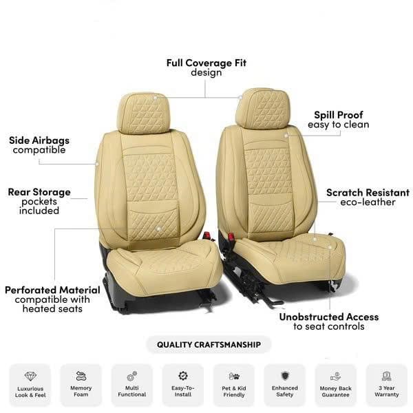 The Beige Breathable Waterproof Diamond Pattern Leather Seat Cover for Cars is part of the car seat covers collection.
